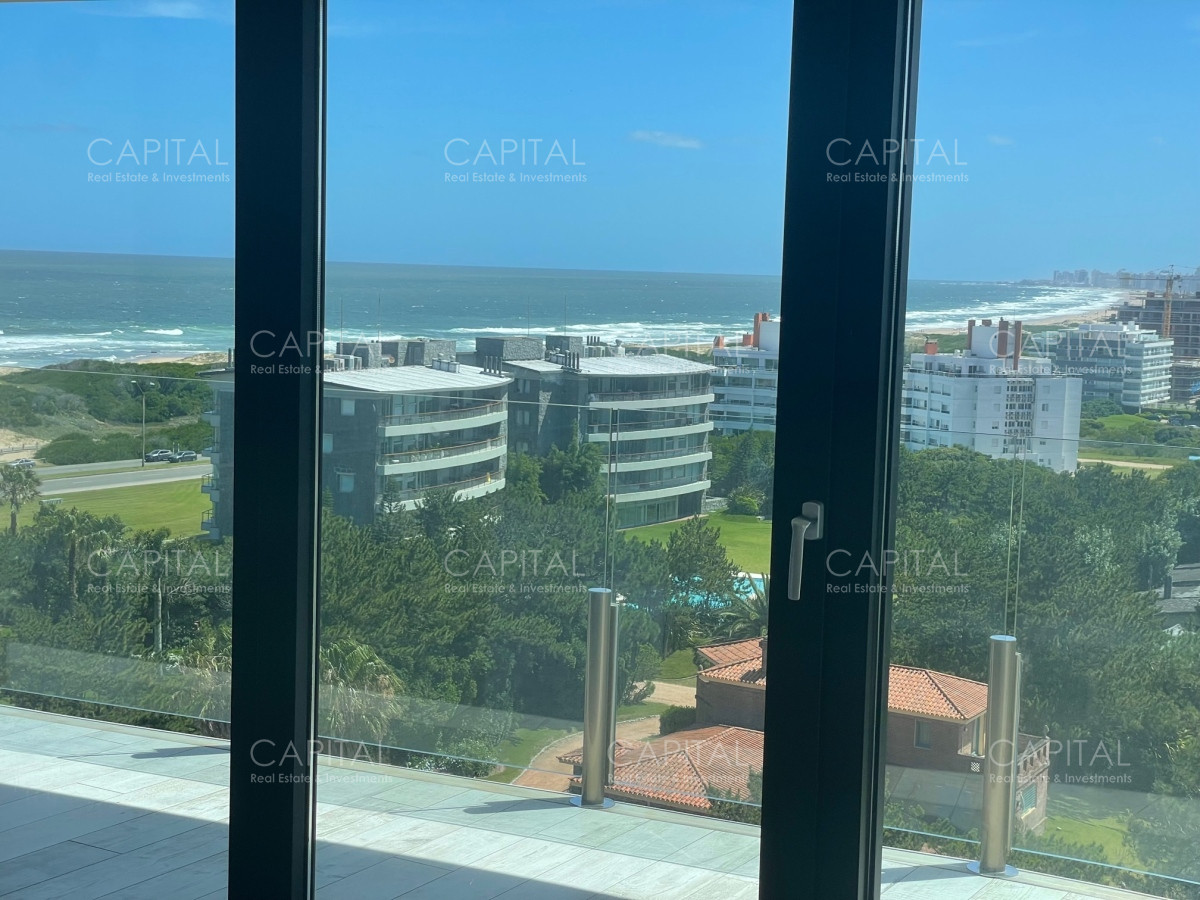 Surfside, Torre premiun con exclusivos amenities y servicios como un hotel 5 estrellas. Gran planta súper luminosa y cómoda de 144 mts totales, cuenta con apaisado living comedor con salida a balcón terraza con vistas al bosque, laguna y también Playa Brava. Cocina integrada estilo americana muy bien equipada, 1 dormitorio en suite amplio, toilette completo y medio dormitorio. Garage. Muy bien equipado y decorado.