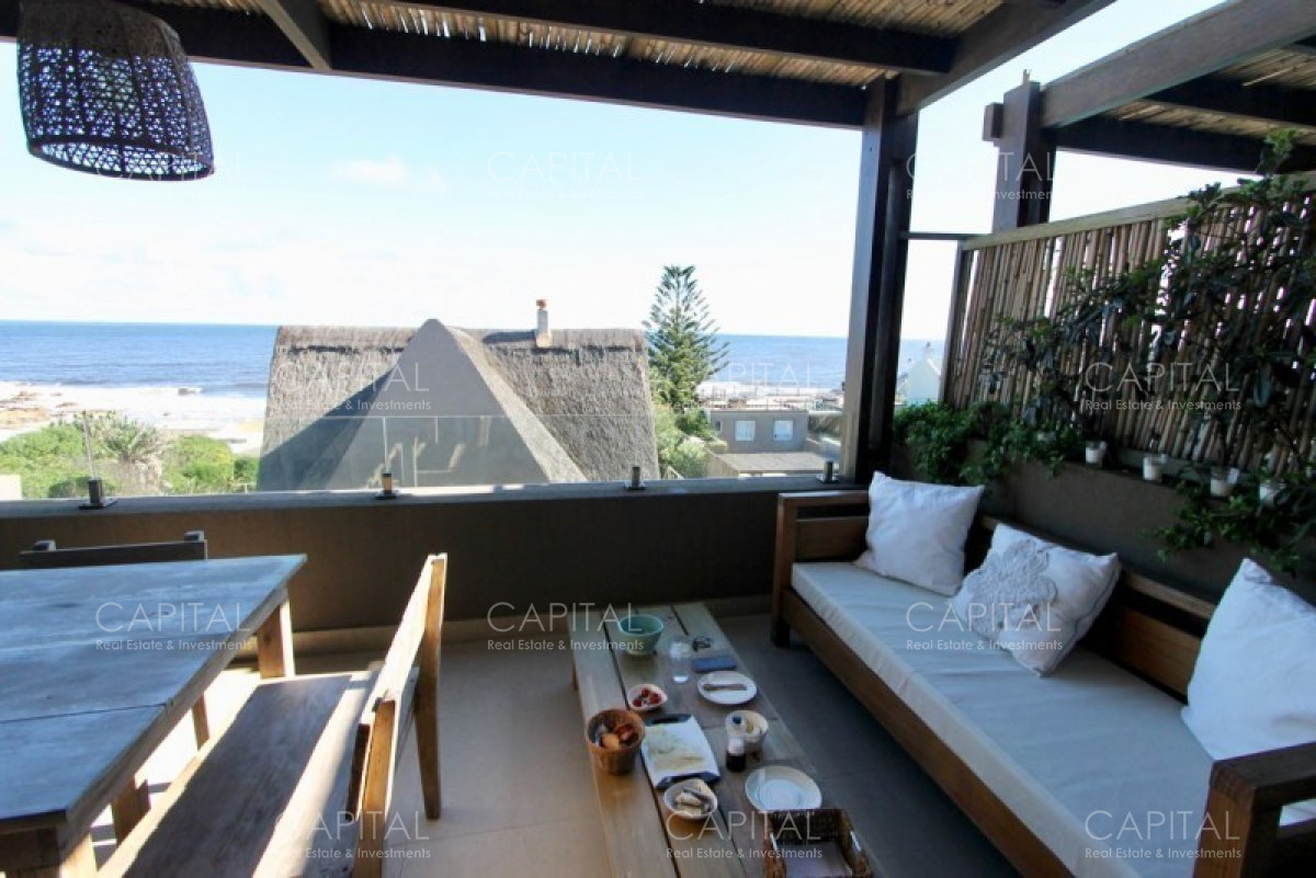 Excelente departamento moderno en edificio frente a Playa Bikini en la exclusiva zona de Manantiales. Cuenta con comodo y luminoso living comedor con salida a gran terraza con parrillero techado super disfrutable, cocina muy bien equipada, 2 dormitorios ( ppal en suite) y 2 baños y dependencia externa con su baño. Cochera. Muy lindo equipado. Edificio con servicios. Ideal para hacer todo caminando.
