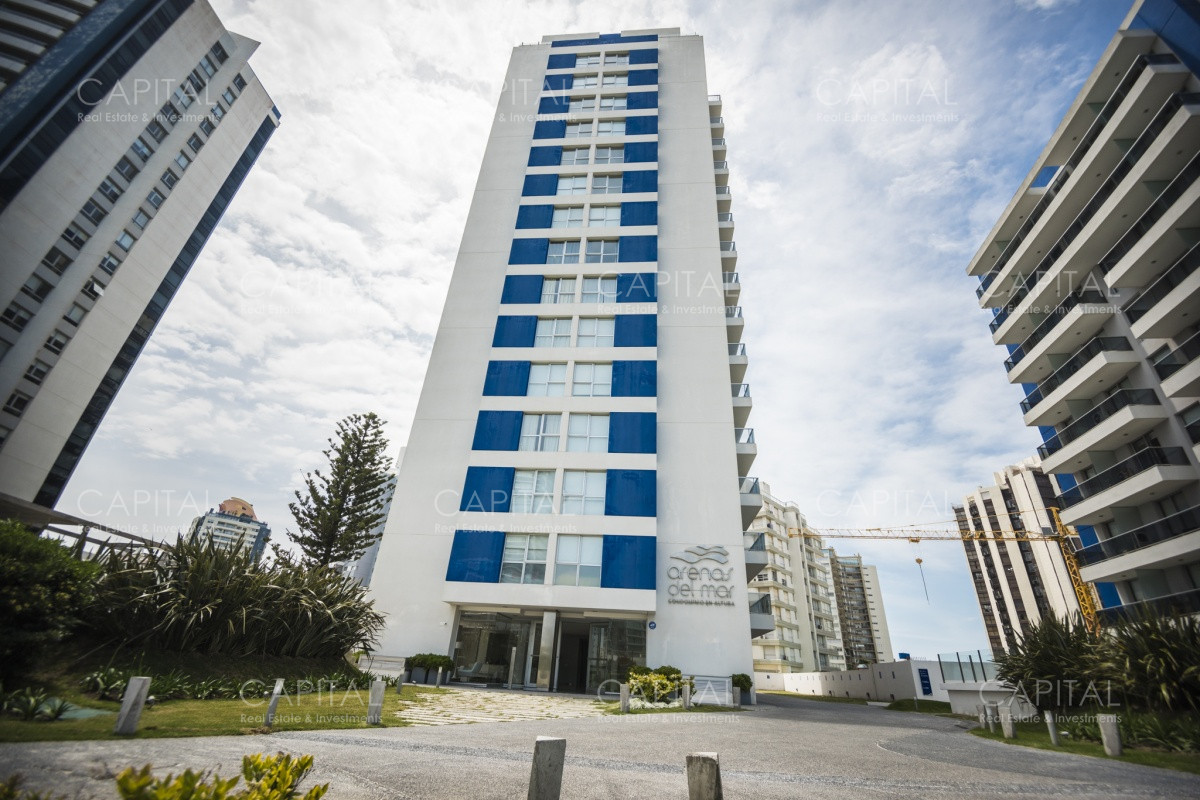 Arenas del mar 1, posee 40 departamentos,distribuidos en 8 plantas (5 por cada piso) Apartamentos de 1 dormitorio y 1/2 con 1 baño y 2 dormitorios y 1/2 con 2 baños, grandes balcones y terraza